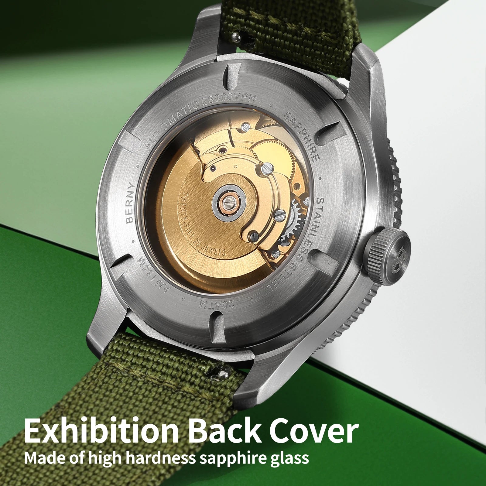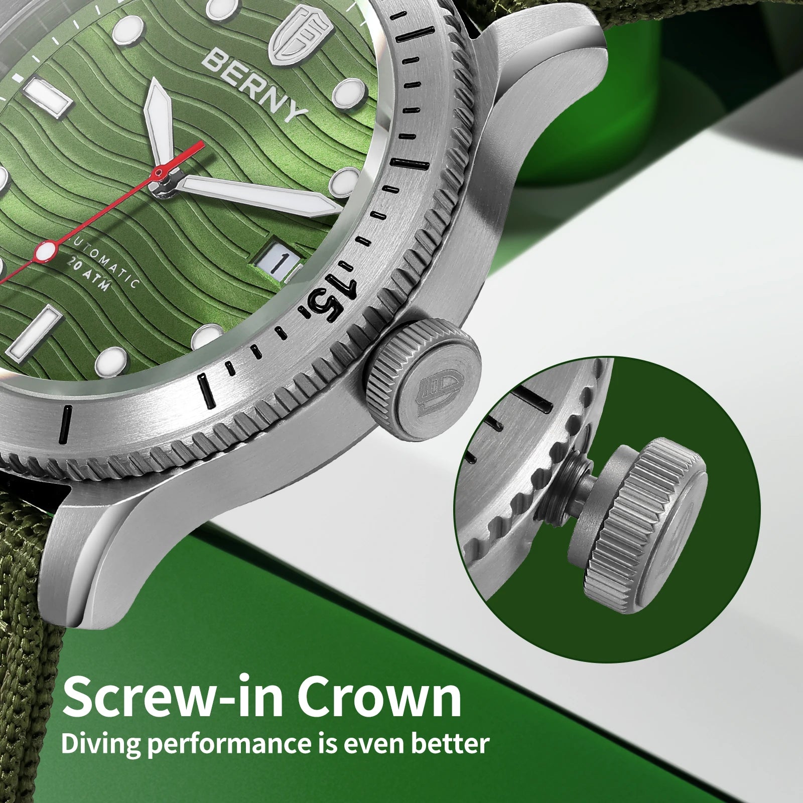 BERNY Automatic Divers Watch Men 20ATM Waterproof Luminous Sapphire PT5000 Movement Mechanical Sport Wristwatch Diving for Men