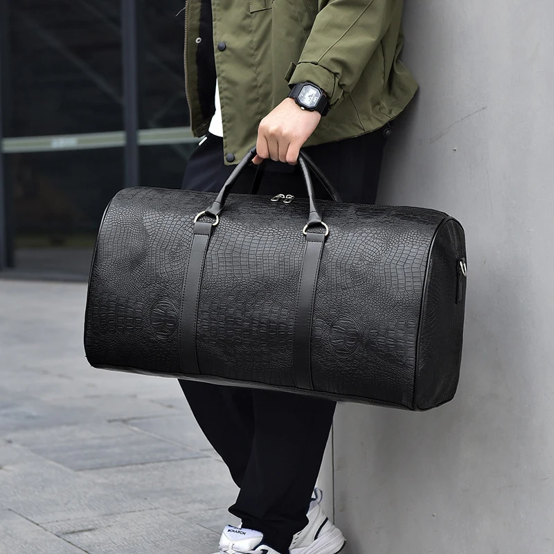 Large Capacity Travel Duffle Bag for Men PU Leather Crocodile Pattern Waterproof Sports daily casual Tote Bag women