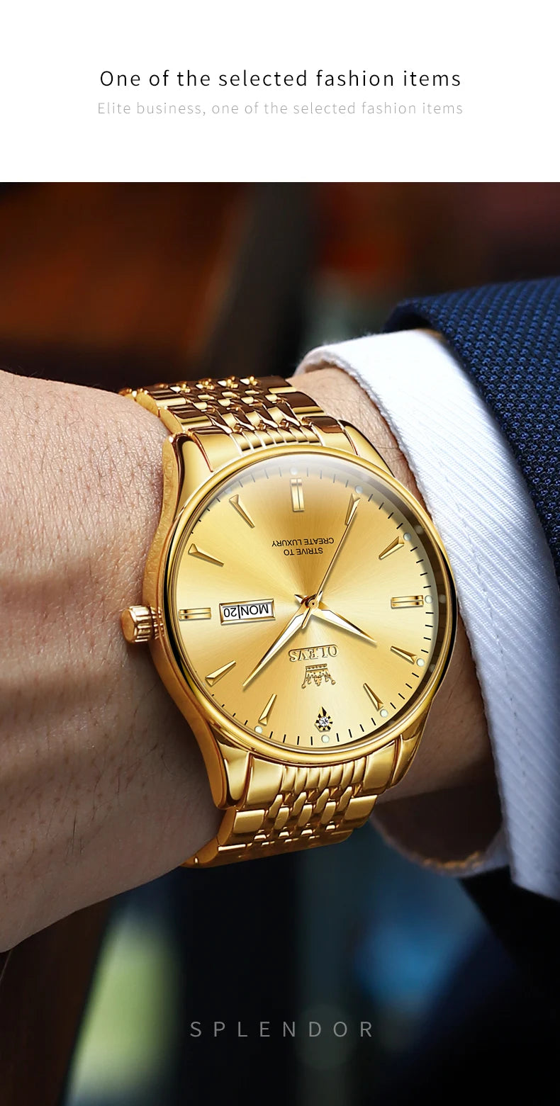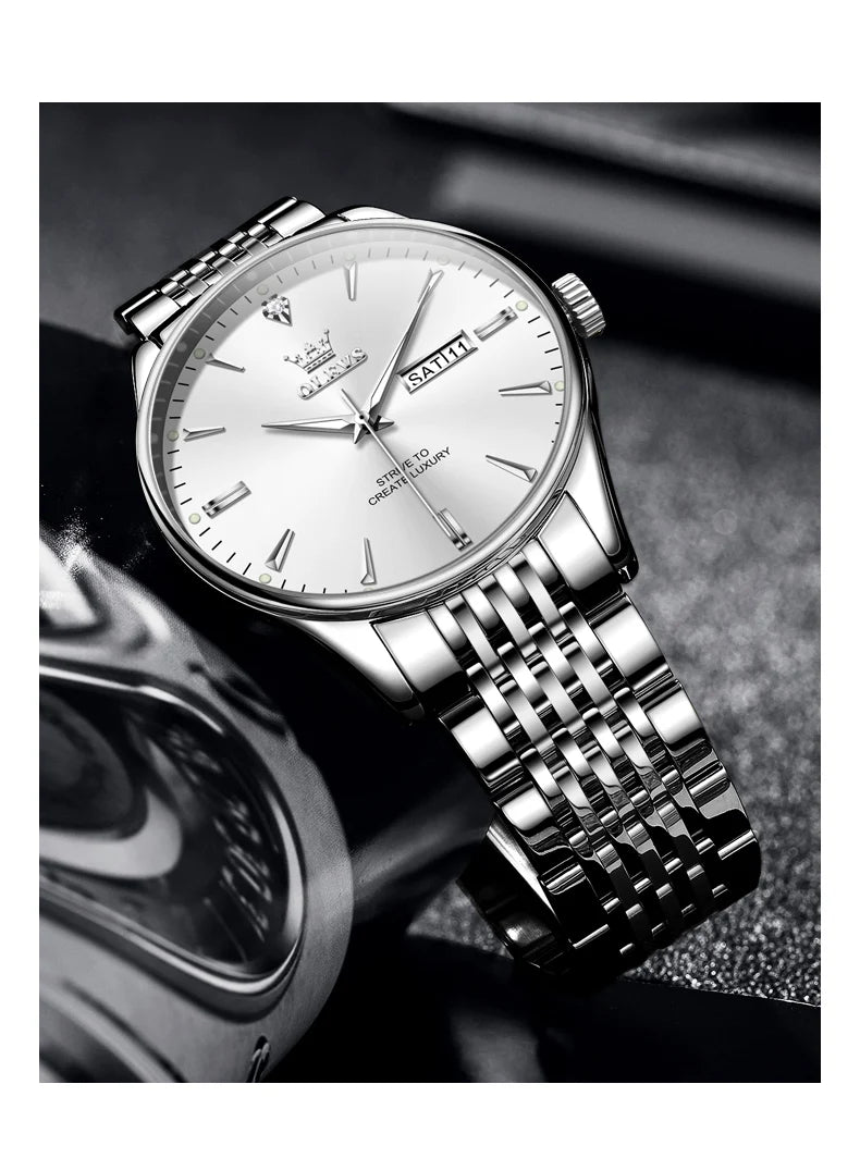 OLEVS Men's Watches Fashion Simple Calendar Week Luminous Waterproof Steel Strap Man Watch Original Quartz Watches for Men 2929