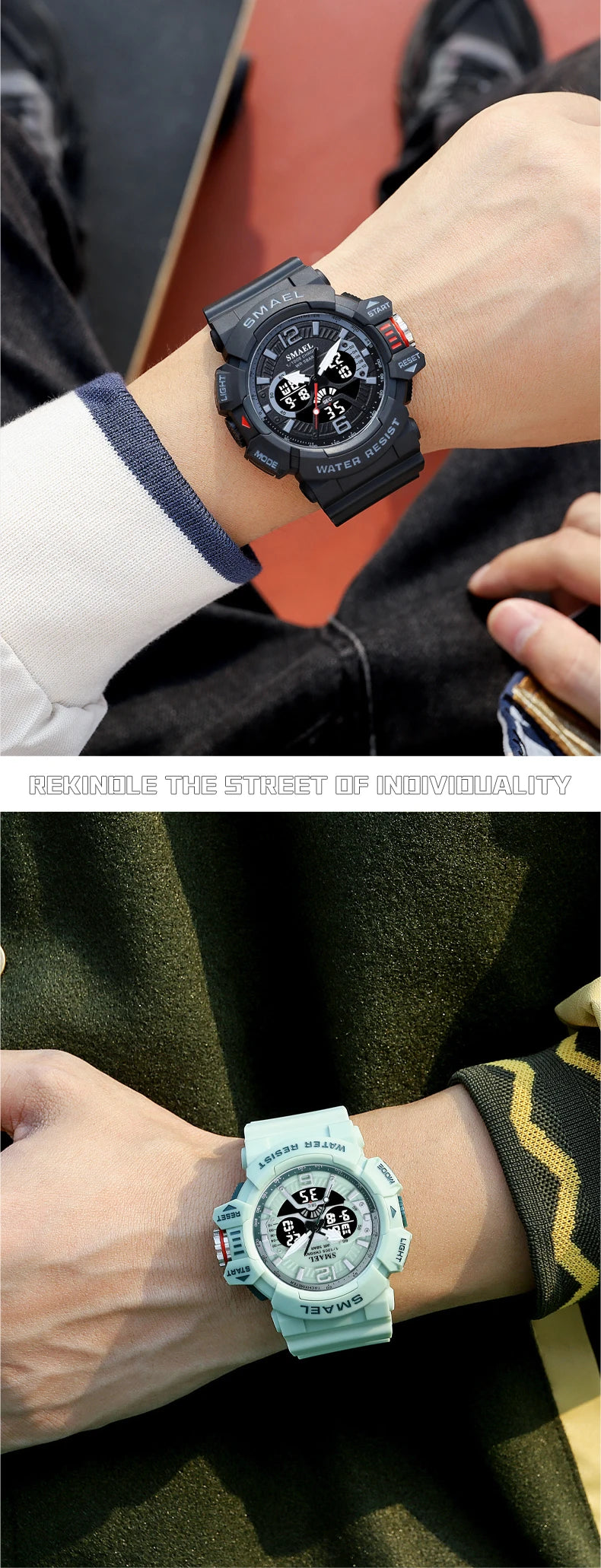 SMAEL Sport Watch for Men Waterproof Wristwatches Student Dual Display Digital Multi-function Stopwatch Clocks 8065 Male Watches
