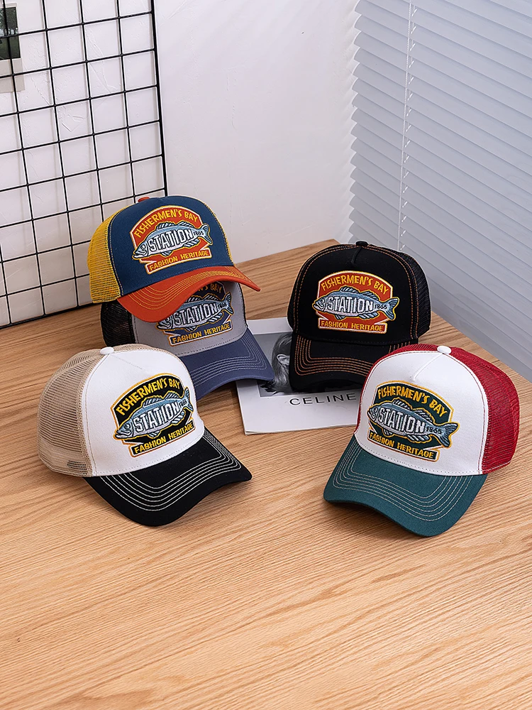 Unisex Summer Fishing Cap Breathable Mesh Trucker Hat Men Women Big Fish Fisherman Embroidered Snapback Hat Outdoor Fishing