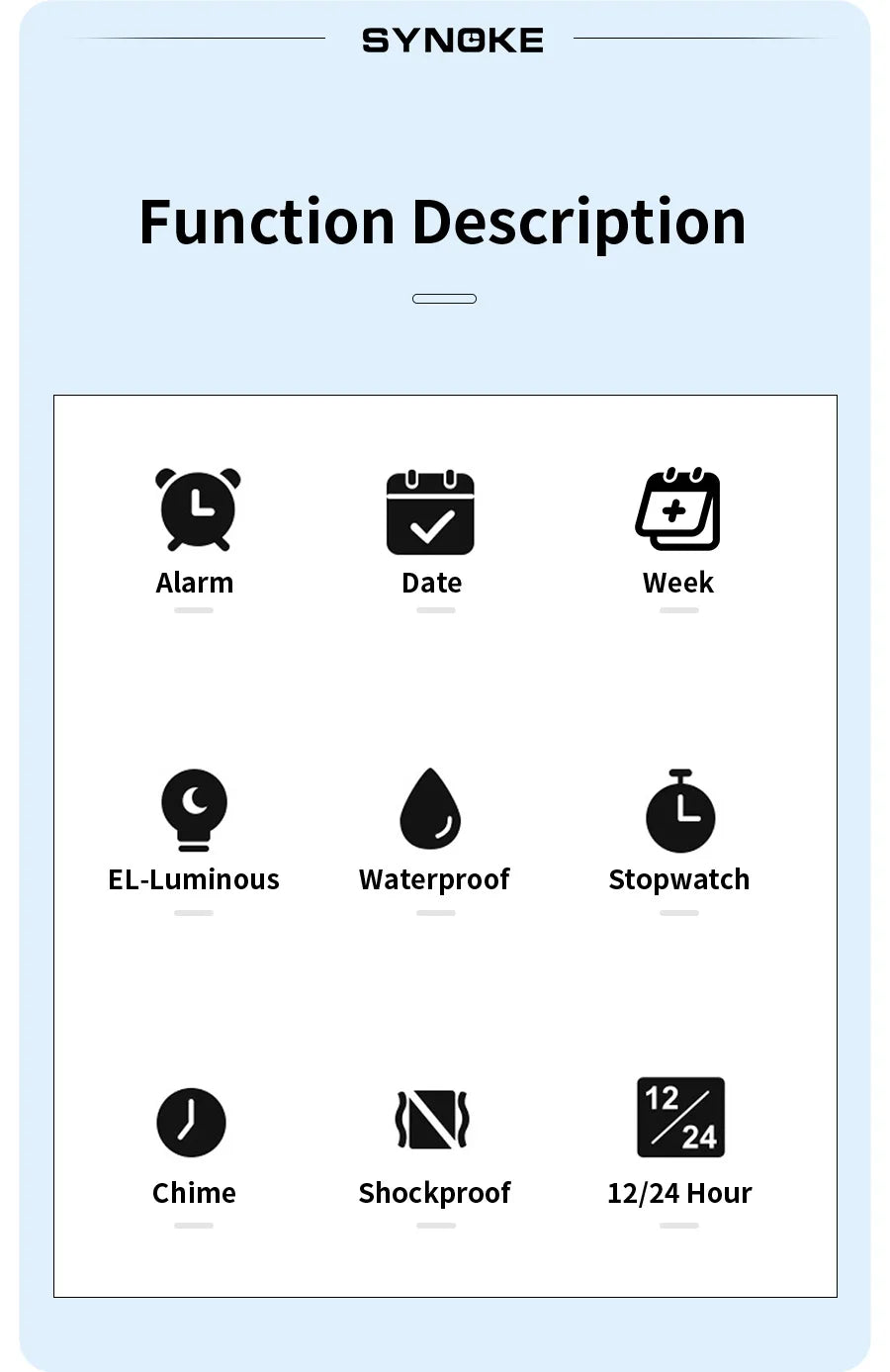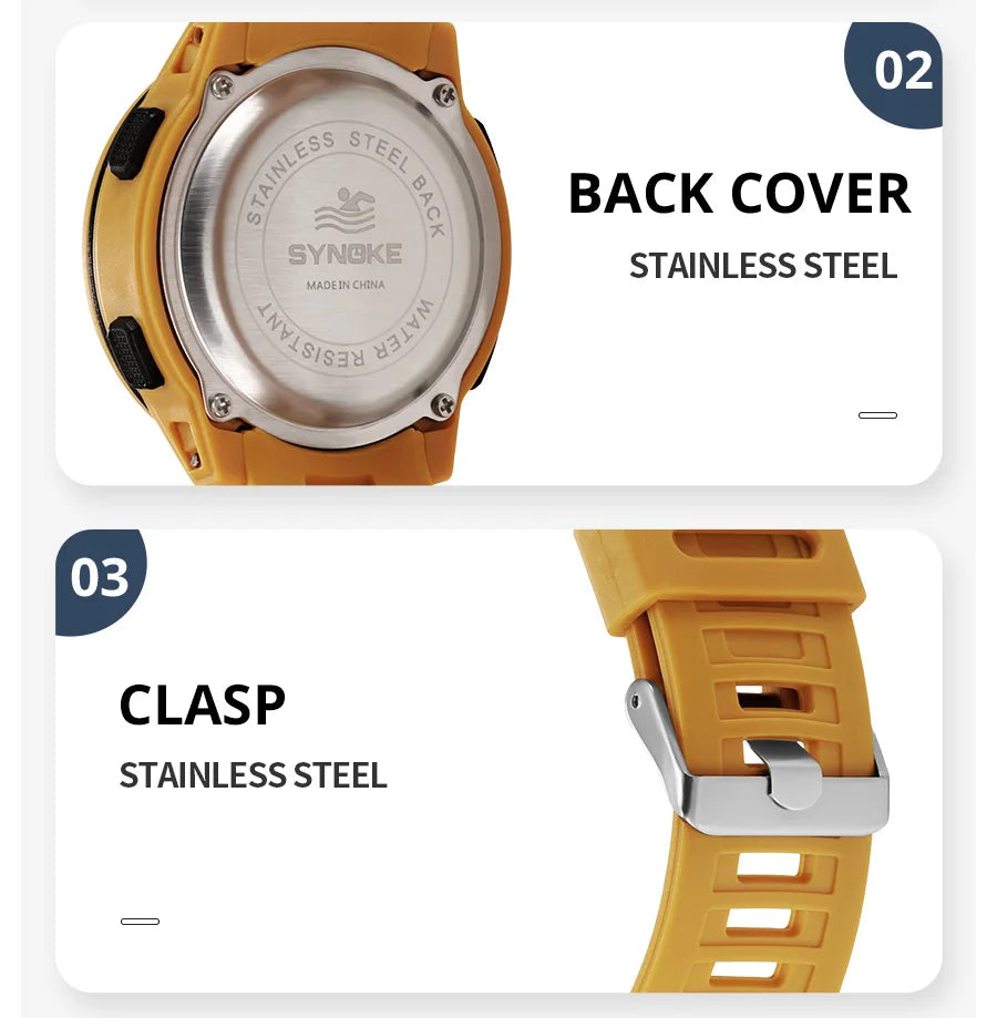 1. Upgraded Movement: Our SYNOKE digital sports watch features an advanced 9813 imported movement, offering superior picture quality and performance compared to the older 9811 version.