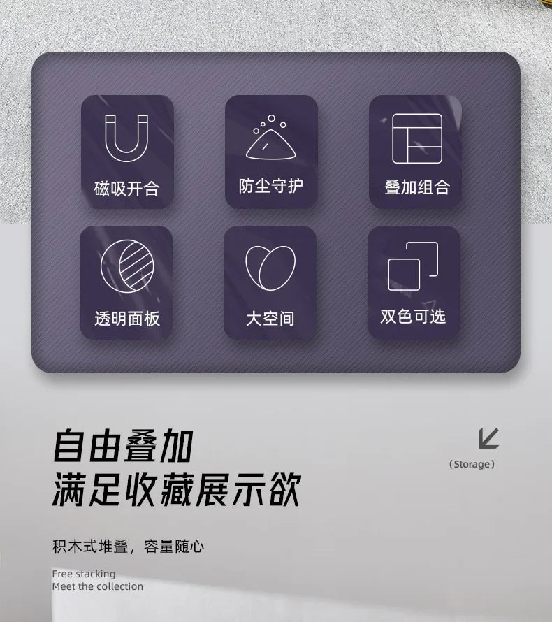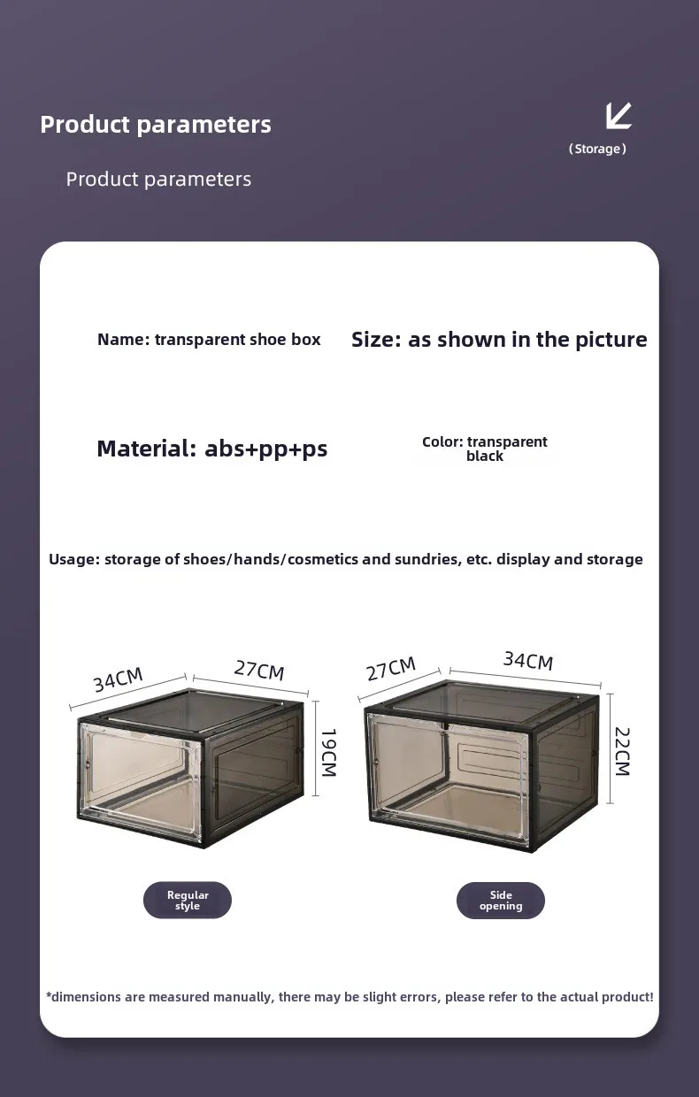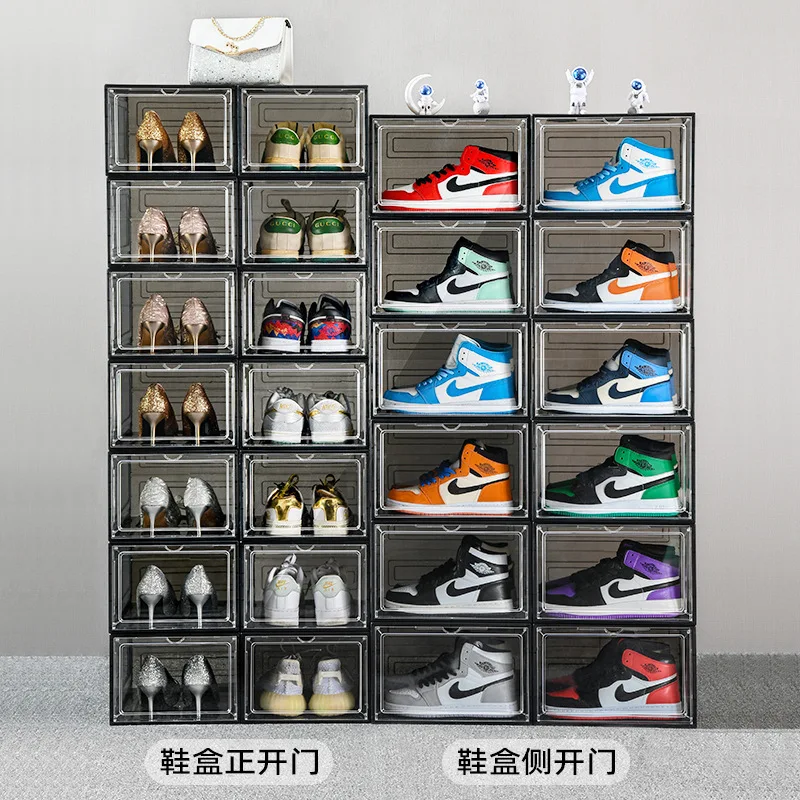 Transparent shoe box, hard box, magnetic storage, acrylic doll bag, hand-held storage box rack, front side opening shoe cabinet