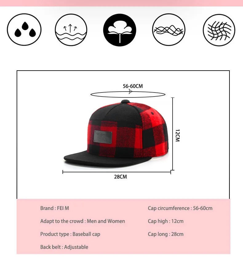FEI M Fashion PLATED CAP Plaid Adjustable Snapback Cap Outdoor Adult Casual Sports Trucker Hat