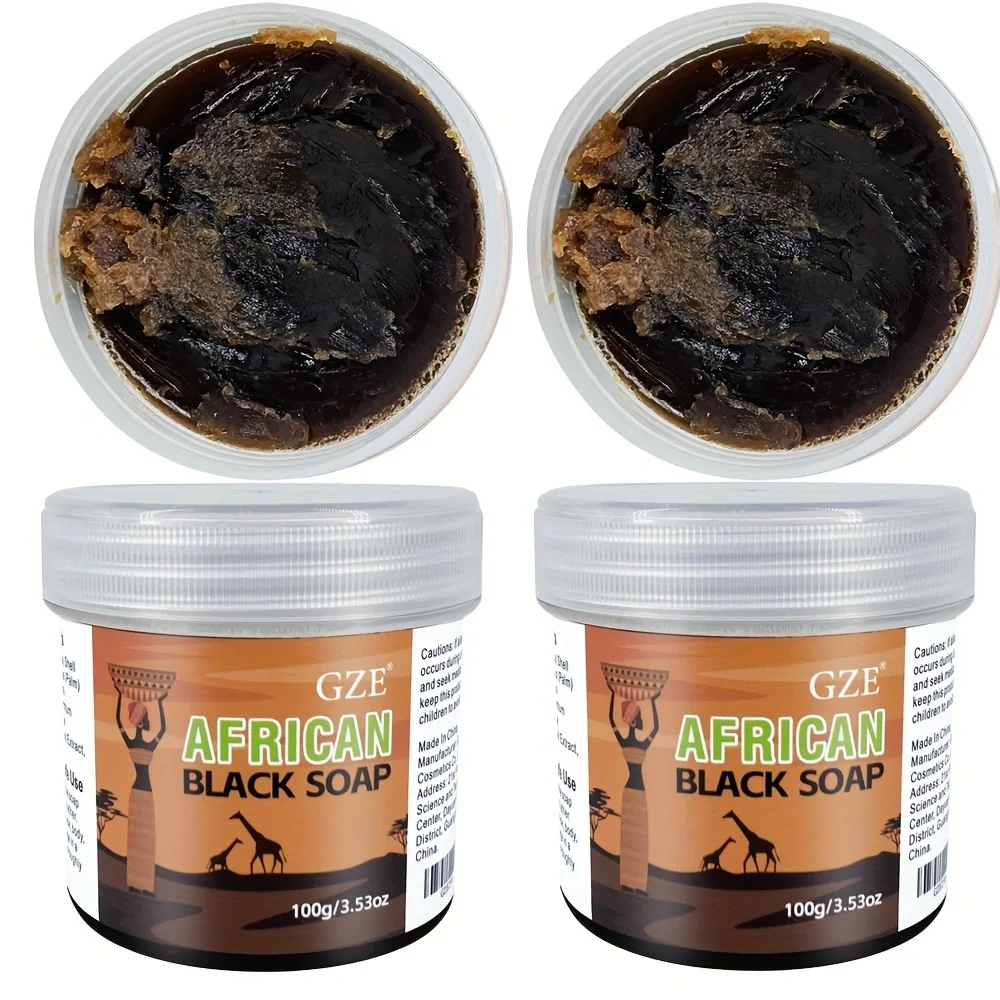 2 Pack GZE African Black Soap 3-in-1 Face, Hair, and Body Cleanser - Deeply Cleanses and Moisturizes Skin and Hair - Handmade