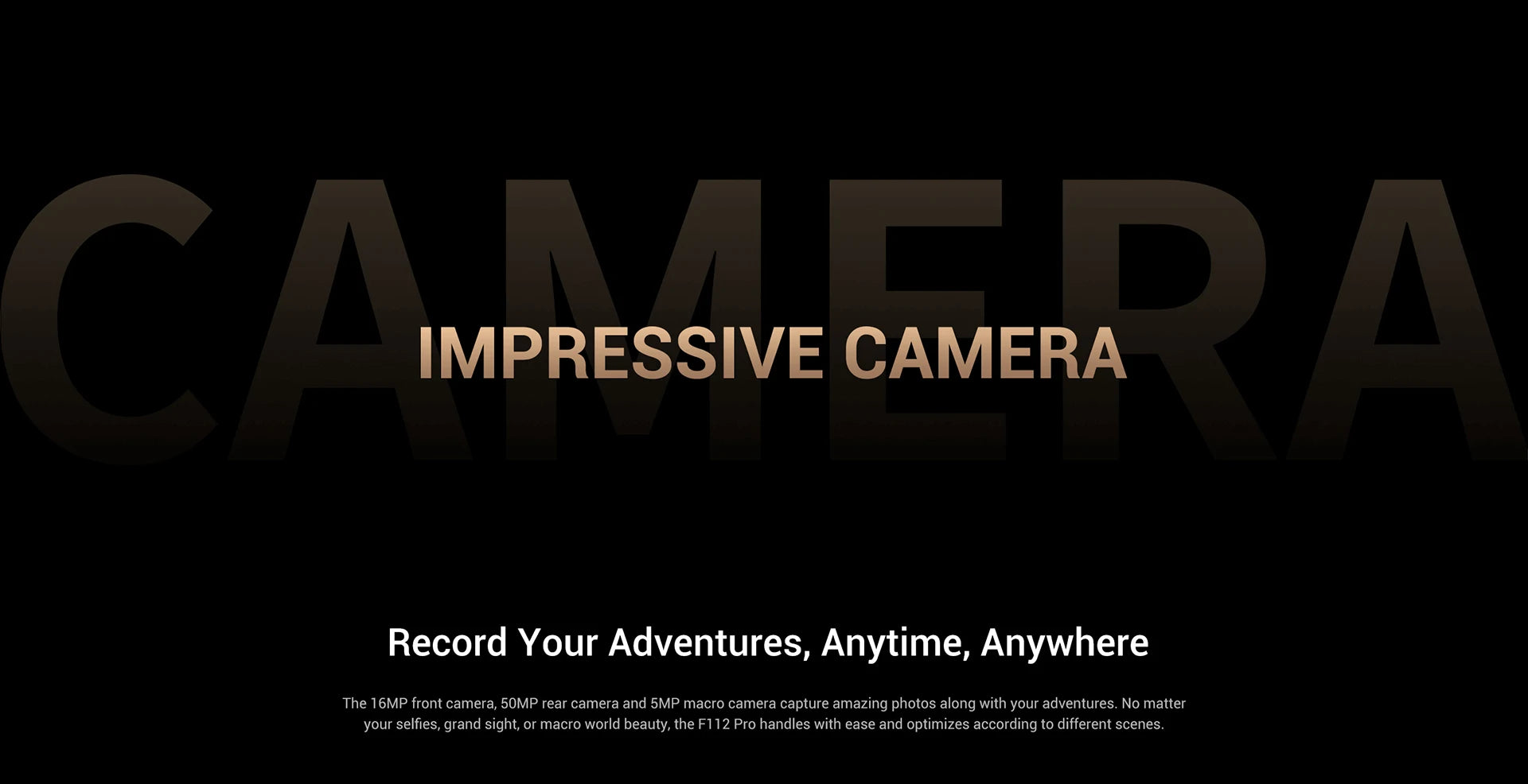 your selfies, grand sight, or macro world beauty, the F112 Pro handles with ease and optimizes according to different scenes