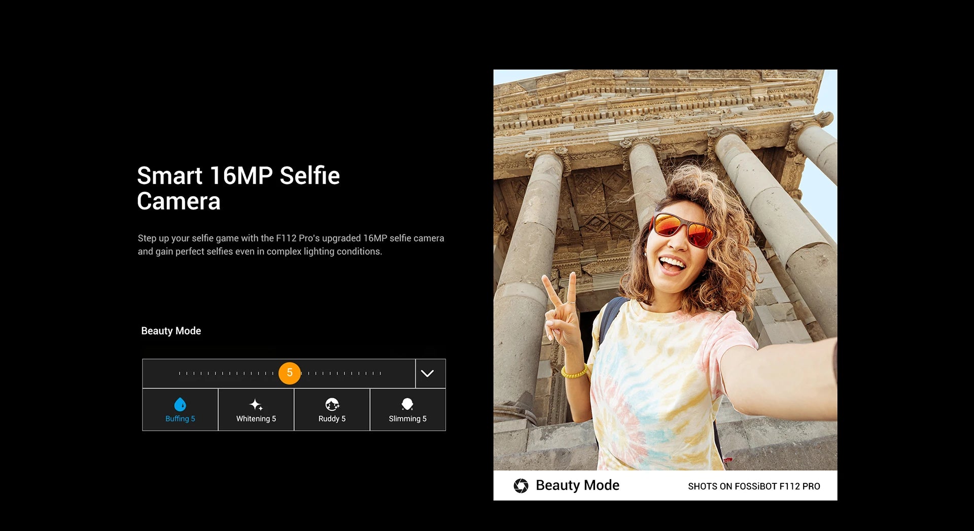 Step up your selfie game with the F112 Pro's upgraded 16MP selfie camera and gain perfect selfes even in complex lighting conditions.