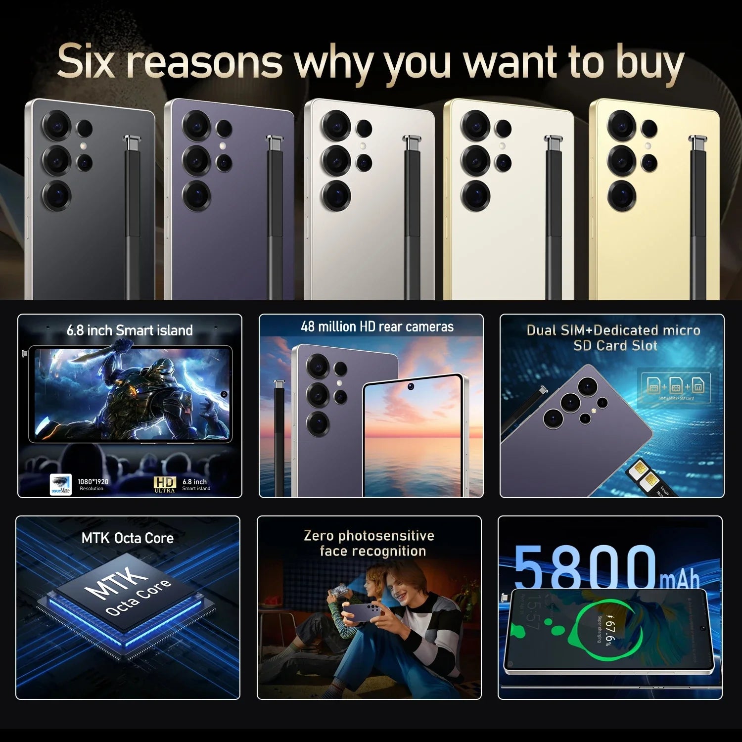 Global Vision S24 Ultra Smartphone 5G Android 5800mAH 8GB RAM 512G ROM 6.8Inch 1920x1080HD 24+48MP MTK10 4G Network Mobile Phone