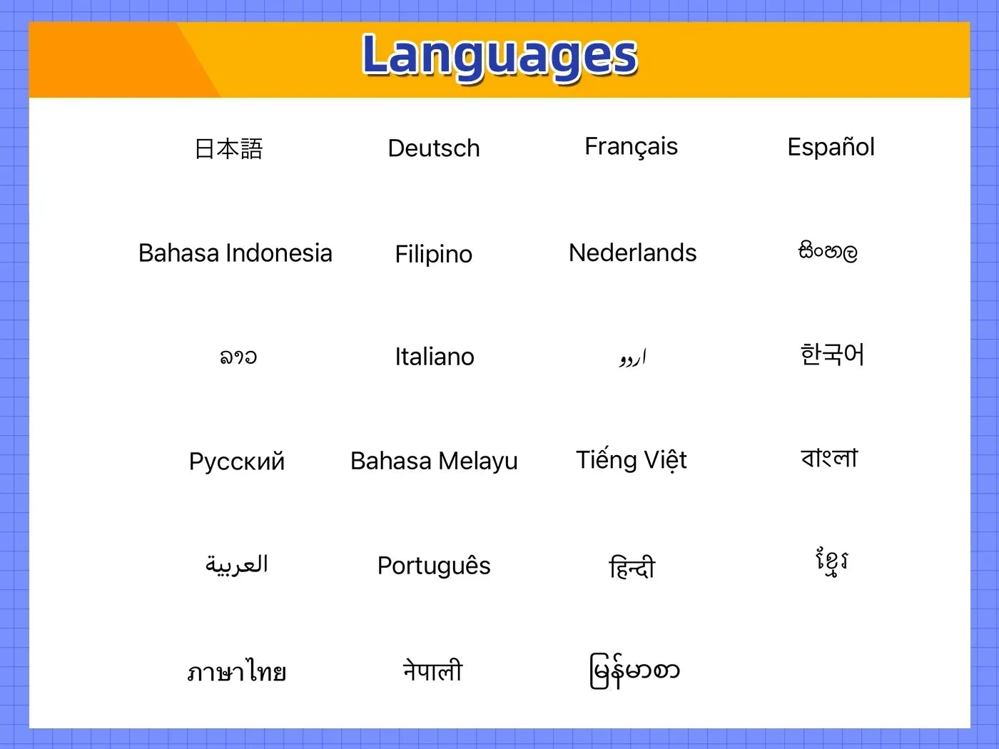 Language: Arabic,German,Russian,French,Korean,Portuguese,Japanese,Spanish,Italian,English