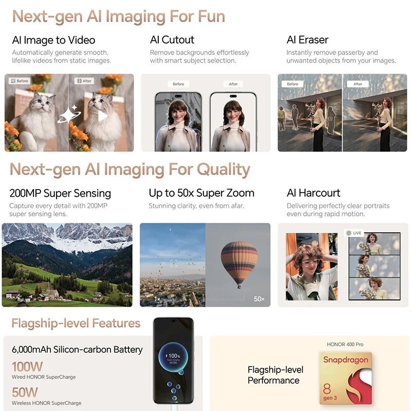 New HONOR 400 Pro Global Version 5G Smartphone 200MP Camera Snapdragon 8 Gen 3 6.7'' AMOLED 100W Wired 50W Wireless