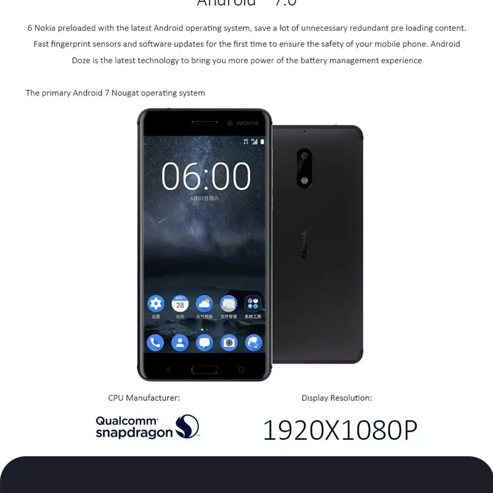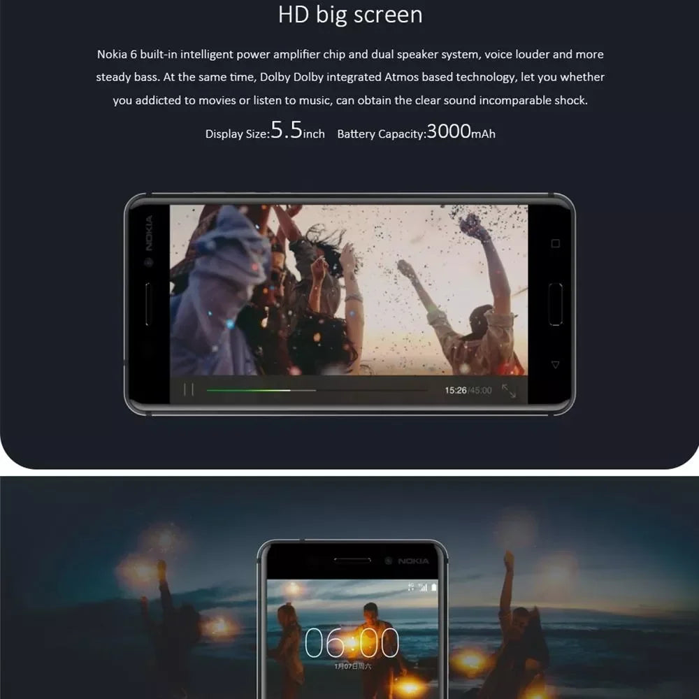 Nokia 6 4G Smartphone Full Screen Dual SIM 4+64G Phone Nokia 6 Cheap Phone Used Phone