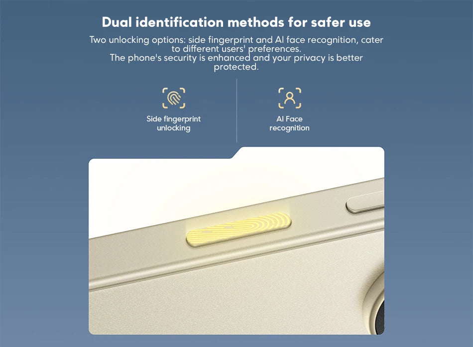 OS -------------- Android 15 (Go Edition),3.5mm headphone jack,Bluetooth 5.2,Side fingerprint sensor,AI face unlock