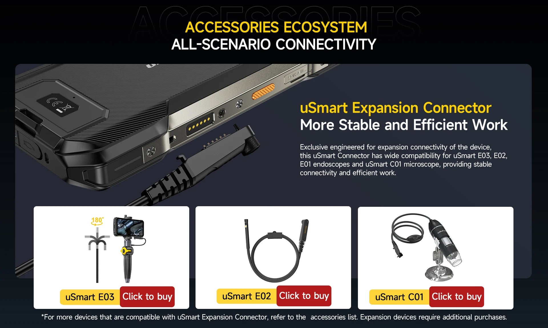 uSmart Expansion Connector, supporting uSmart series accessories. And the type-C port allows charging while the uSmart Connector working.