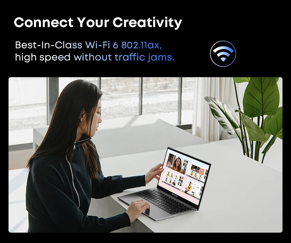 Compact yet ultra-functional, the GemiBook XPro features a full-sized borderlesskeyboard that provides a comfortable typing experience in spite of its small buildEnlarged touchpad expands the control boundaries and makes operation simpleand effective without needing a mouse.Connect Your Creativity