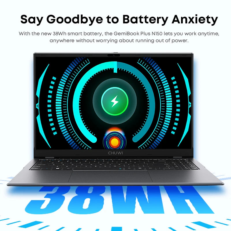 With the new 38Wh smart battery, the GemiBook Plus N150 lets you work anytime.