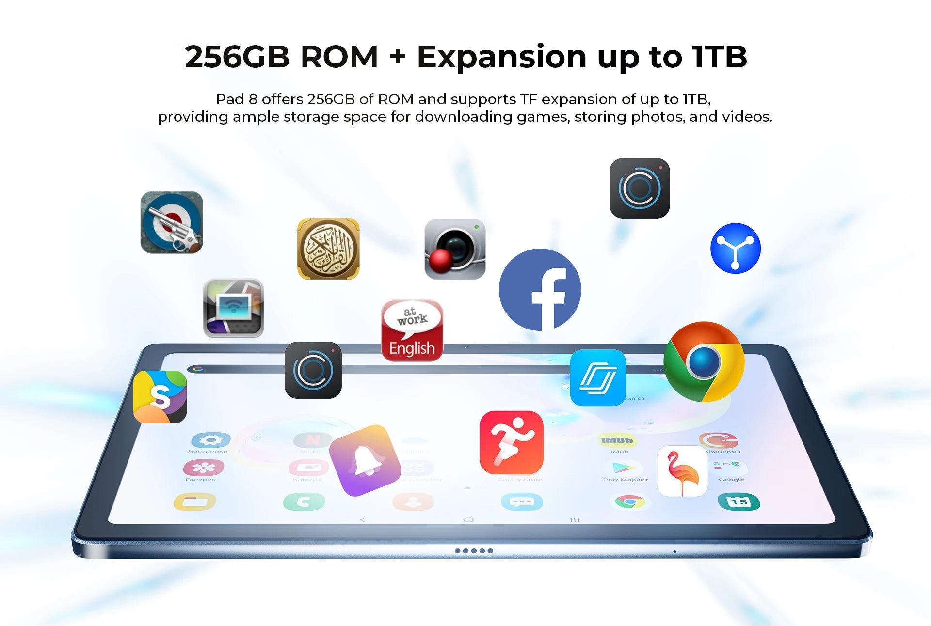 Pad 8 offers 256GB of ROM and supports TF expansion of up to 1TB,