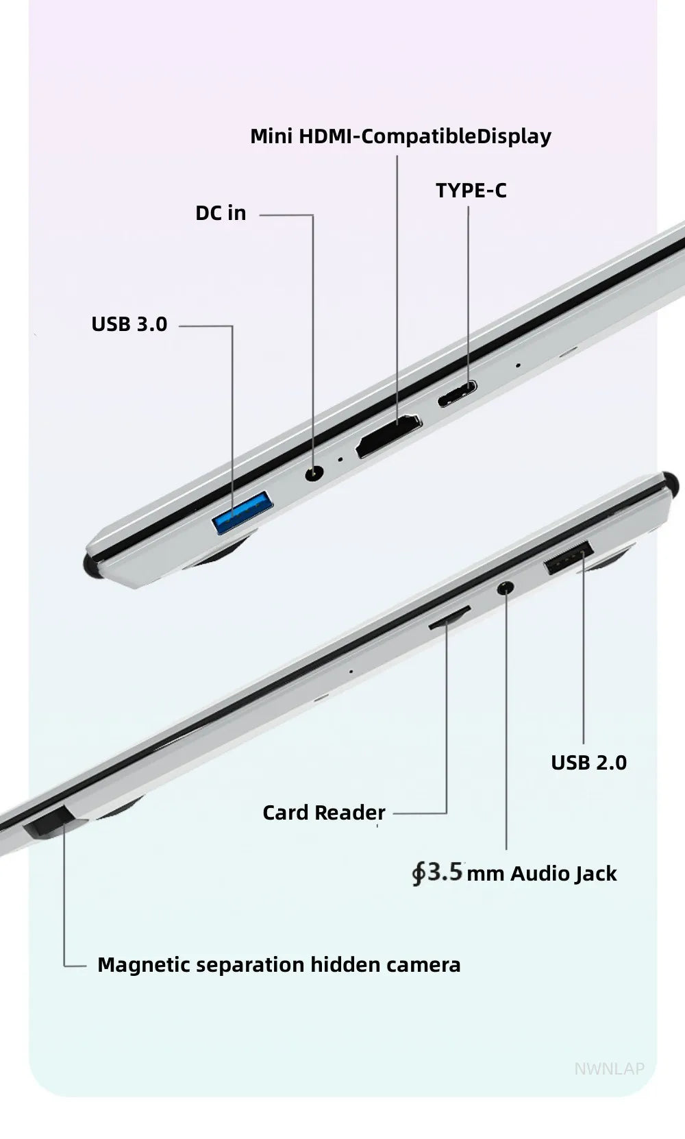 6.USB3.0*2 ,USB-C*1,headphone jack*1,mini HDMI*1,TF Card*1(Maximum 128G)