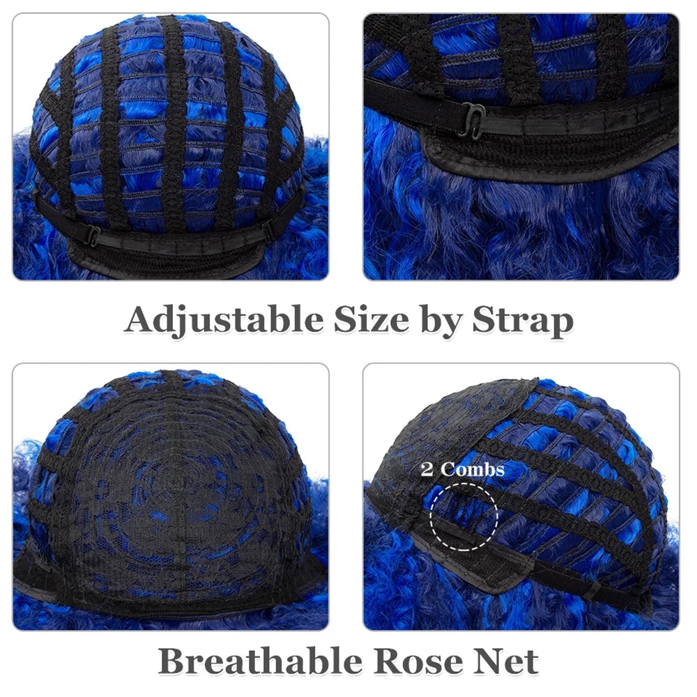 Short Hair Afro Kinky Curly Wigs With Bangs for Black Women African Synthetic Ombre Glueless Cosplay Natural Blonde Red Blue Wig