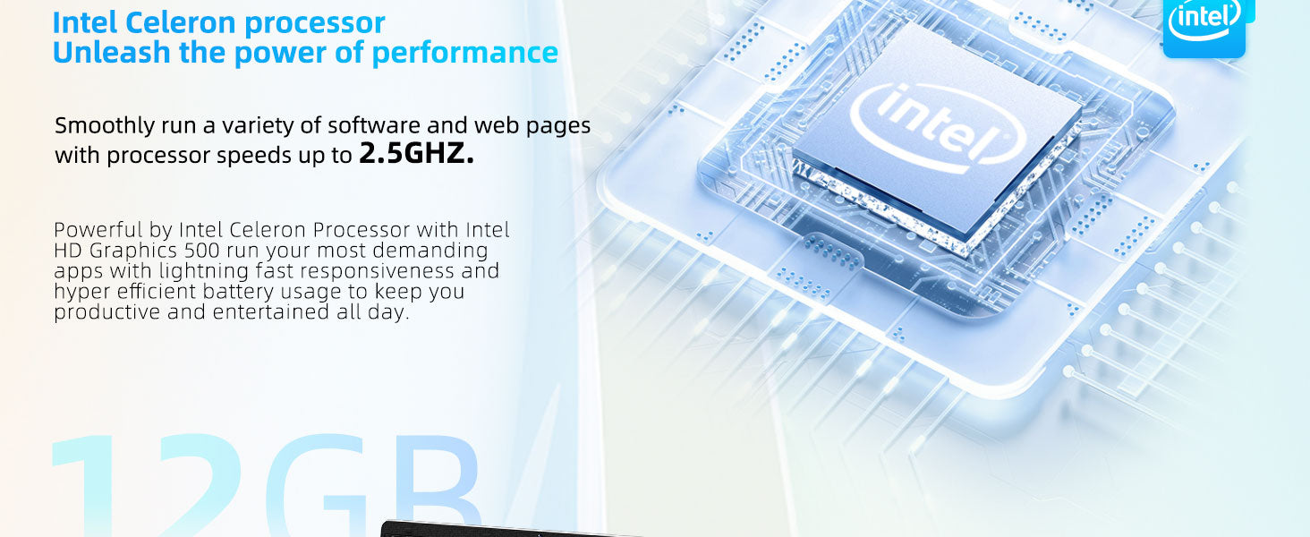 14 Inch Laptop PC 12GB LPDDR4 RAM 256GB SSD ROM 1080p FHD IPS Screen Windows 11 Computer with Celeron 4-Core Processor WIFI