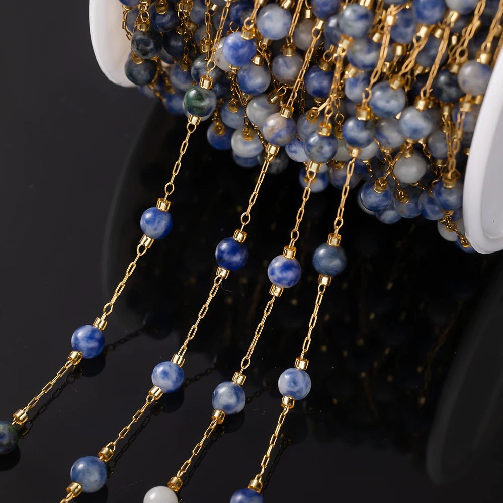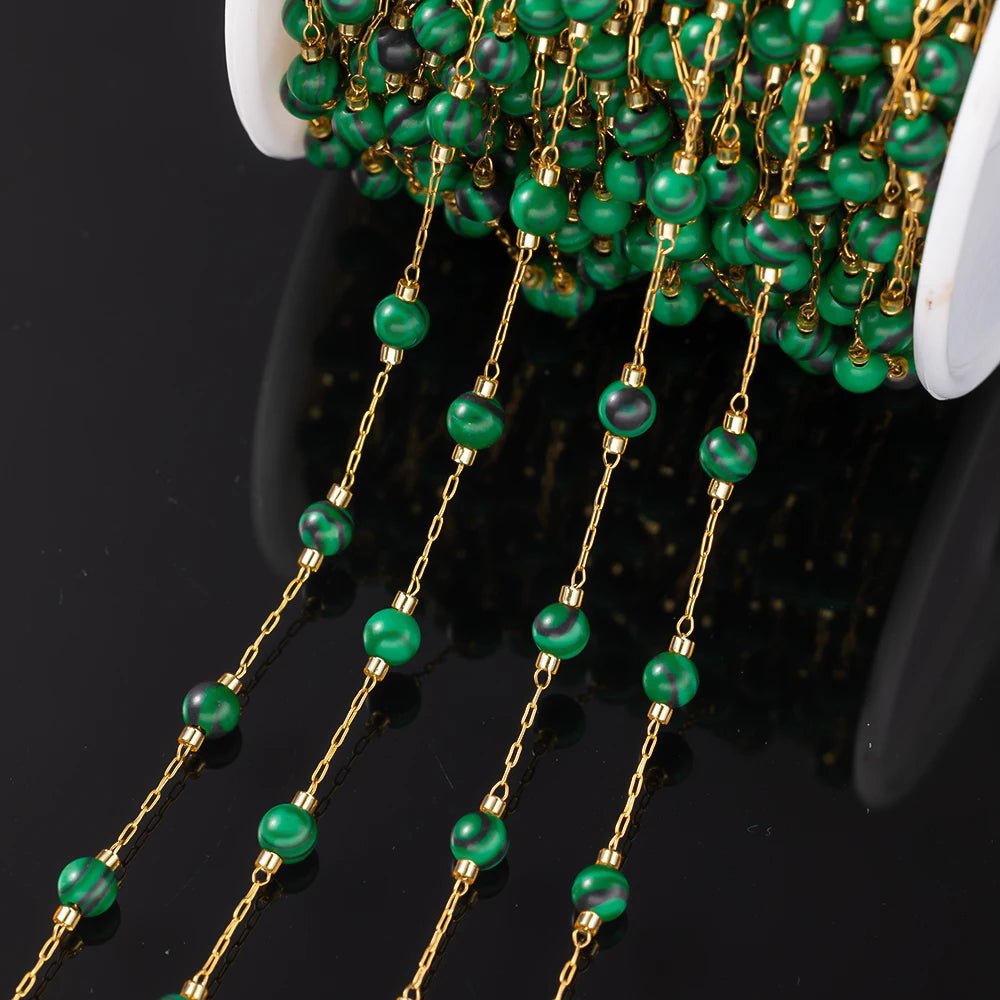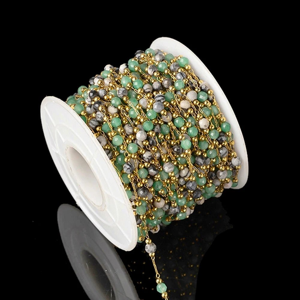 1Meter Elegant Mix Round Stone Beads 3mm Stainless Steel Chain for Jewelry Making DIY Necklaces Bracelet Clothing Craft Supplies