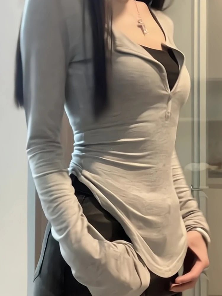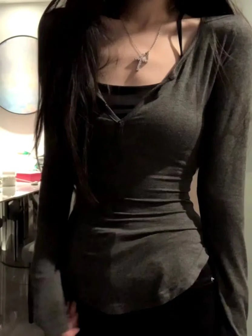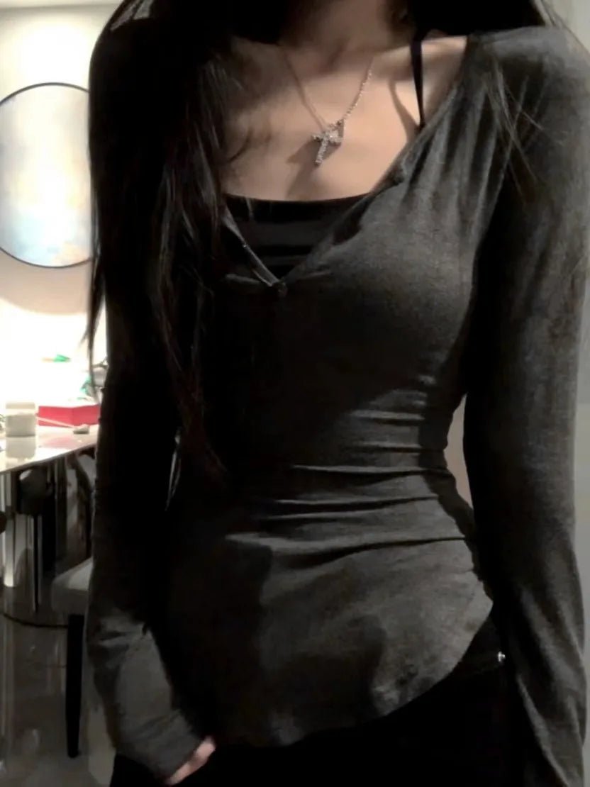 2025 Autumn New V-neck Tops Mujer Y2k Grunge Slim Fit Long Sleeve Tee Shirt Fashion Sexy All-match T-shirt for Women