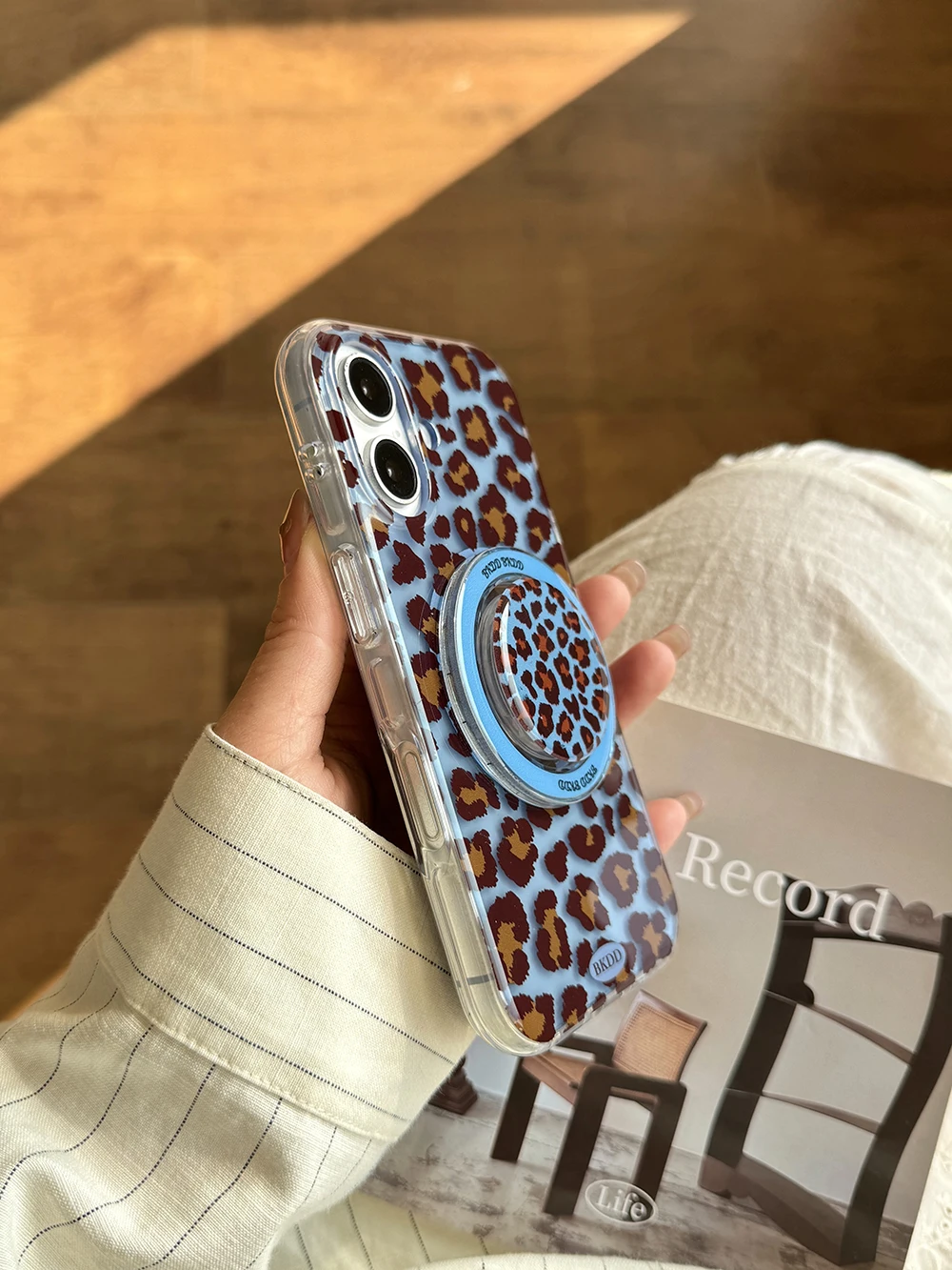 Luxury Leopard For Magsafe Grip Tok Phone Case for IPhone 17 16 15 14 13 Pro Max Wireless Charge Magnetic Stand Holder Fashion Cover