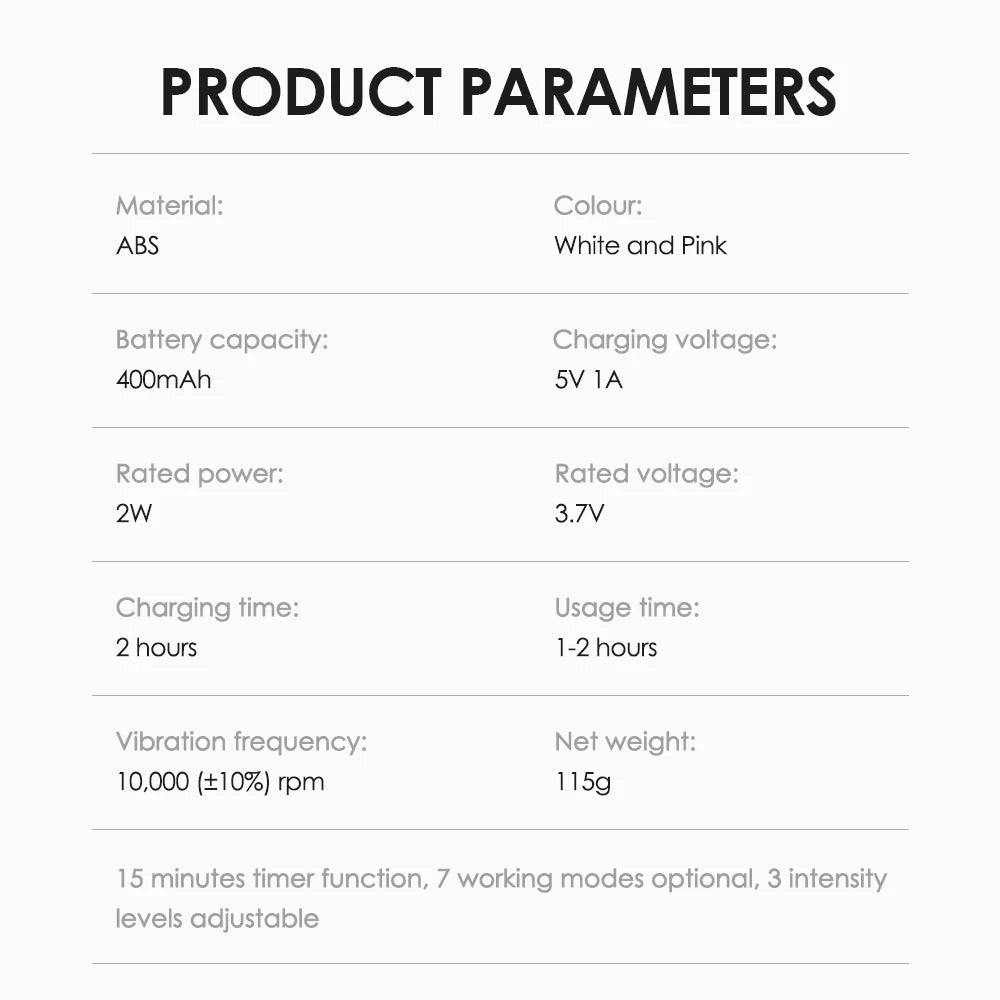 15 minutes timer function, 7 working modes optional, 3 intensity levels adjustable.
