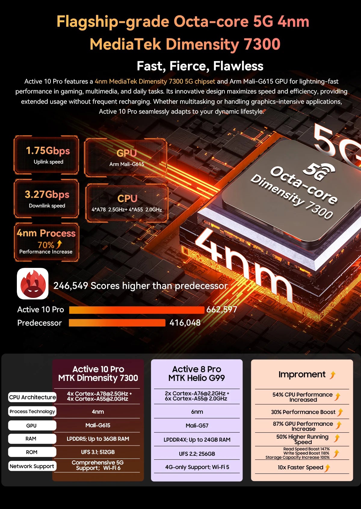 CPU: MediaTek Dimensity 7300, Octa-core,Up to 2.5GHz