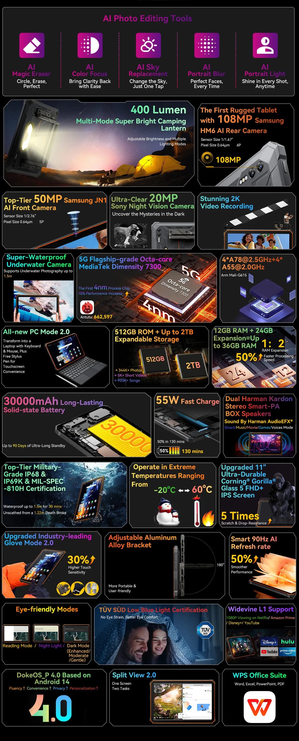 [World Premiere] Blackview Active 10 Pro Rugged Tablets 5G MTK 7300, 11" FHD+ Display, 12GB 512GB, 30000mAh Battery 108MP Camera