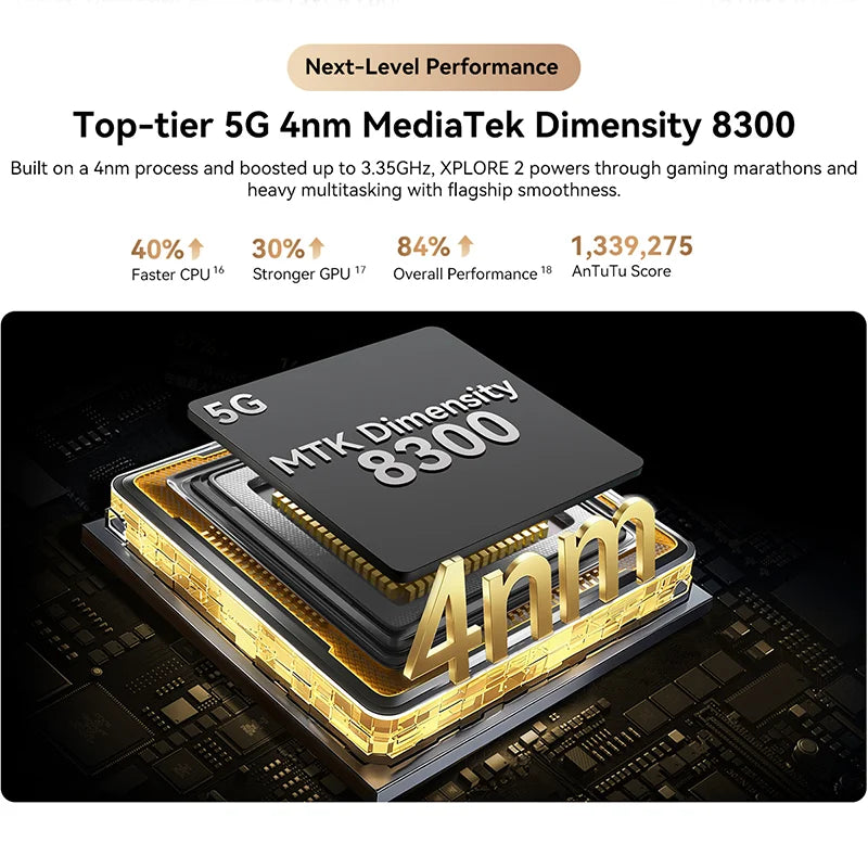 CPU : Octa-core 5G MediaTek Dimensity 8300, 4nm, Up to 3.35GHZ