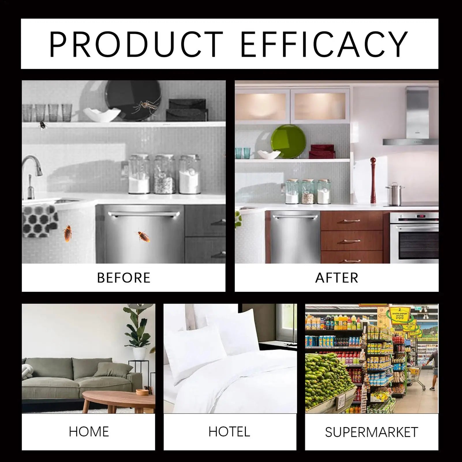 5.Broad Use: Ideal for placement near water pipes, stoves, and in kitchens, living rooms, or corners to ensure broad coverage against roaches. The Roach Bait is effective